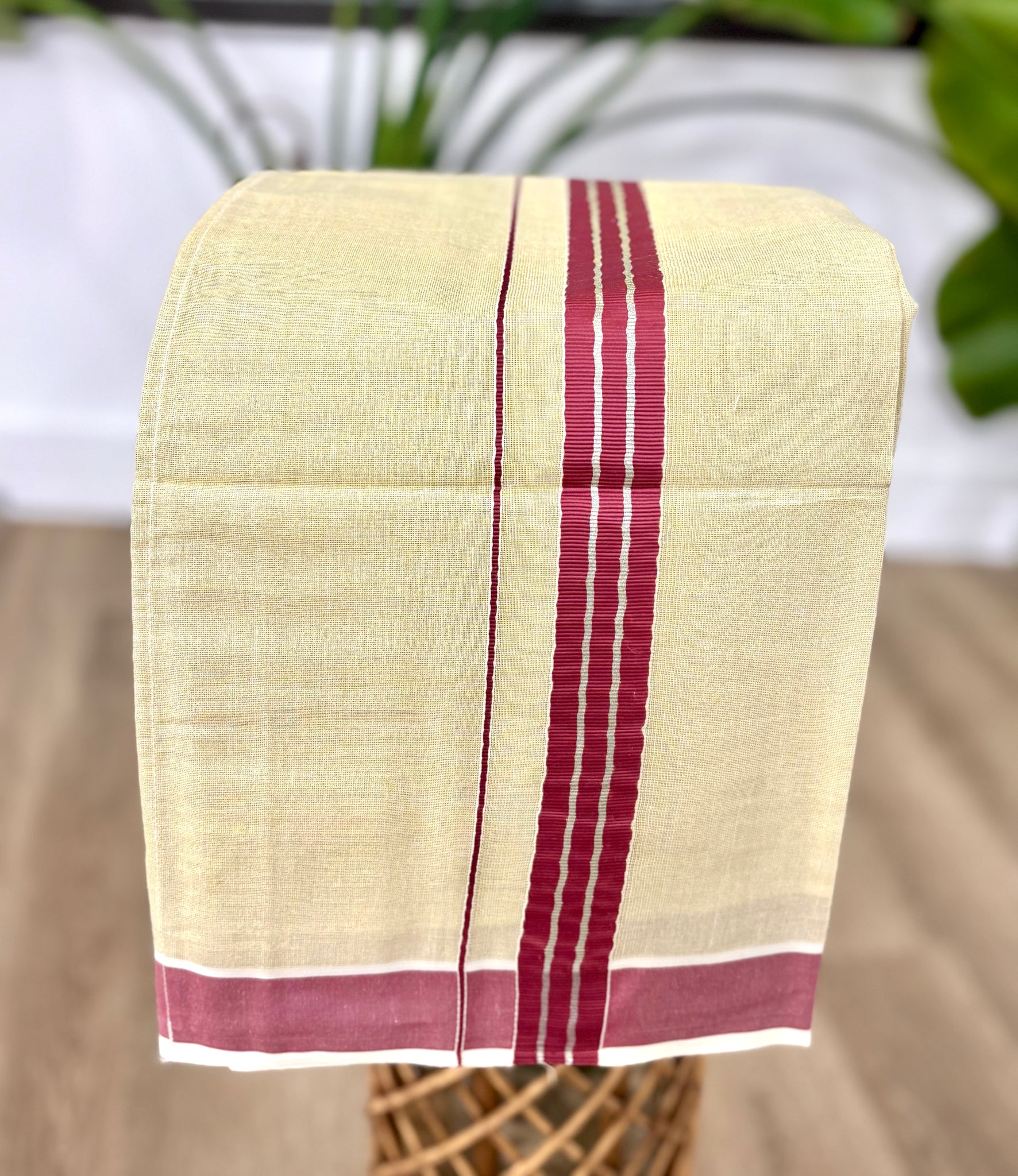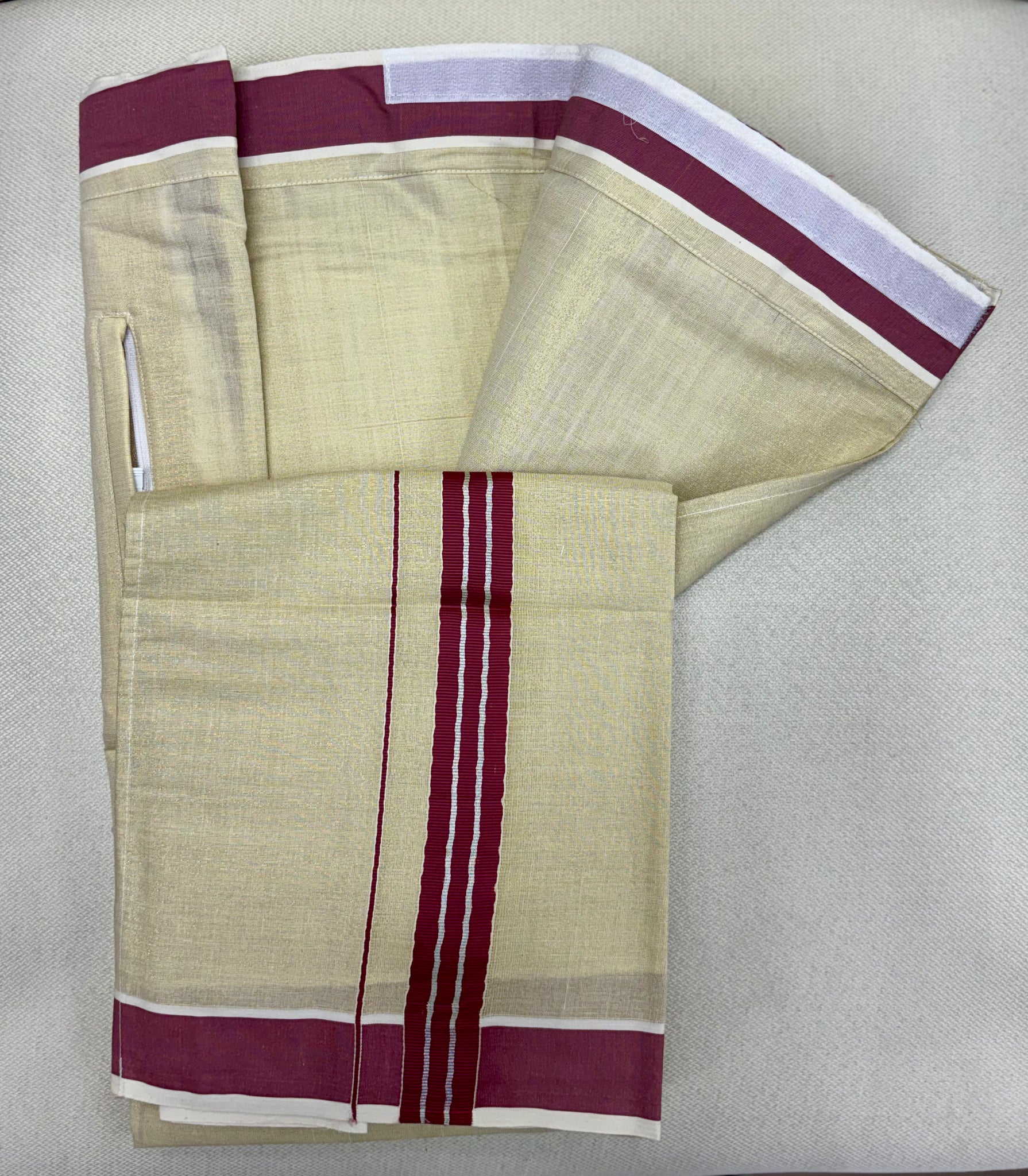 Jacquard Cotton Blend White Dhoti with Reversible Border