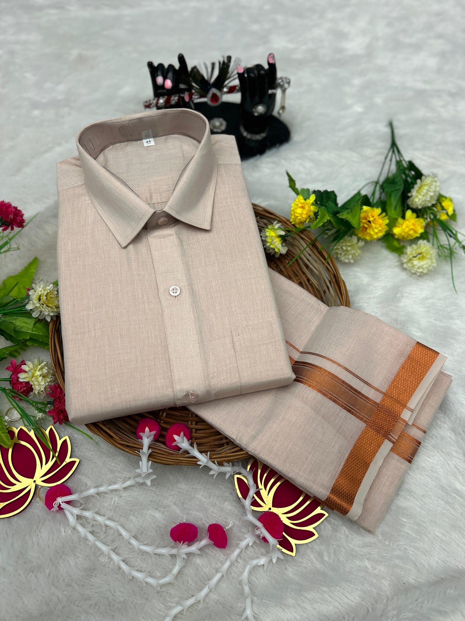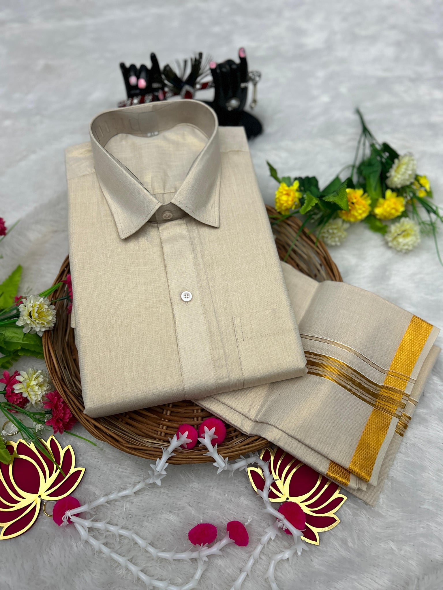 Premium Men Tissue Cotton Dhoti and Shirt