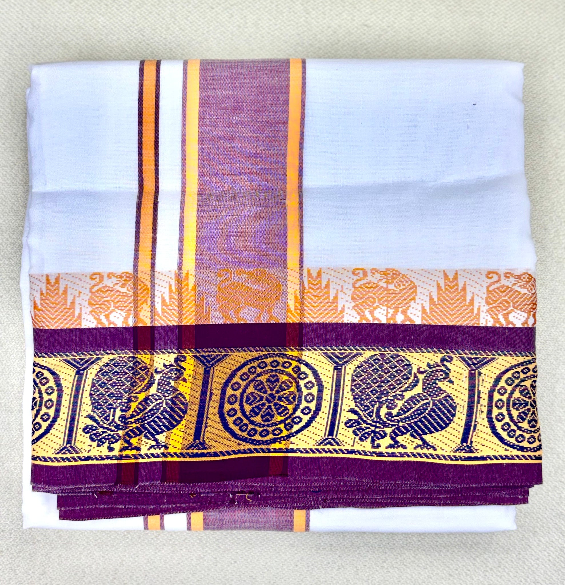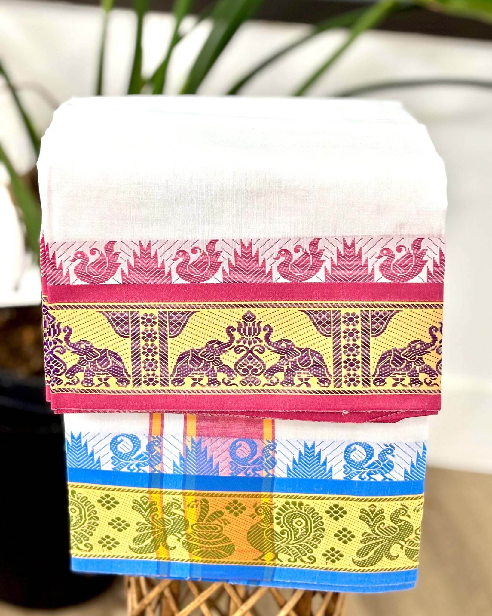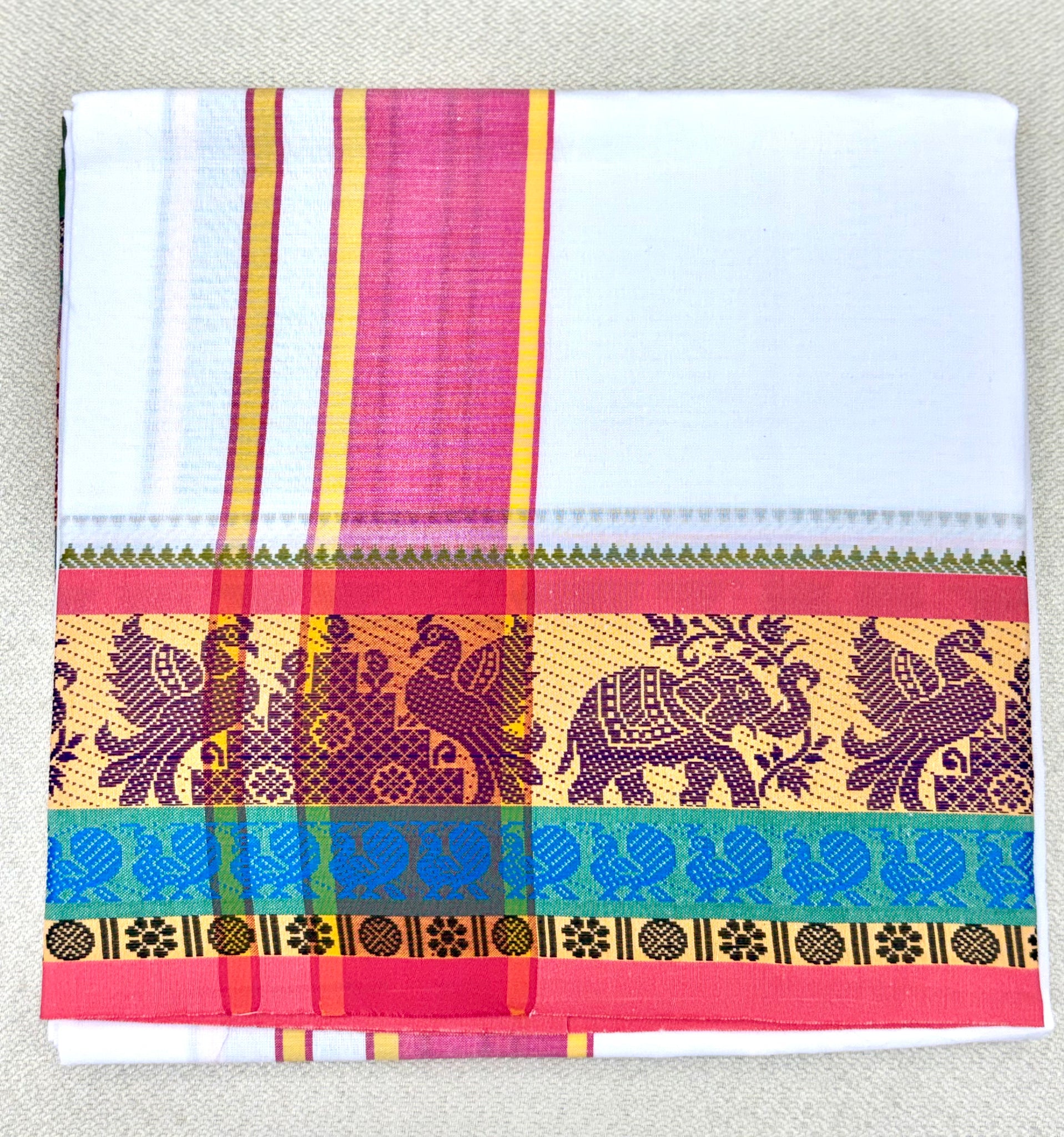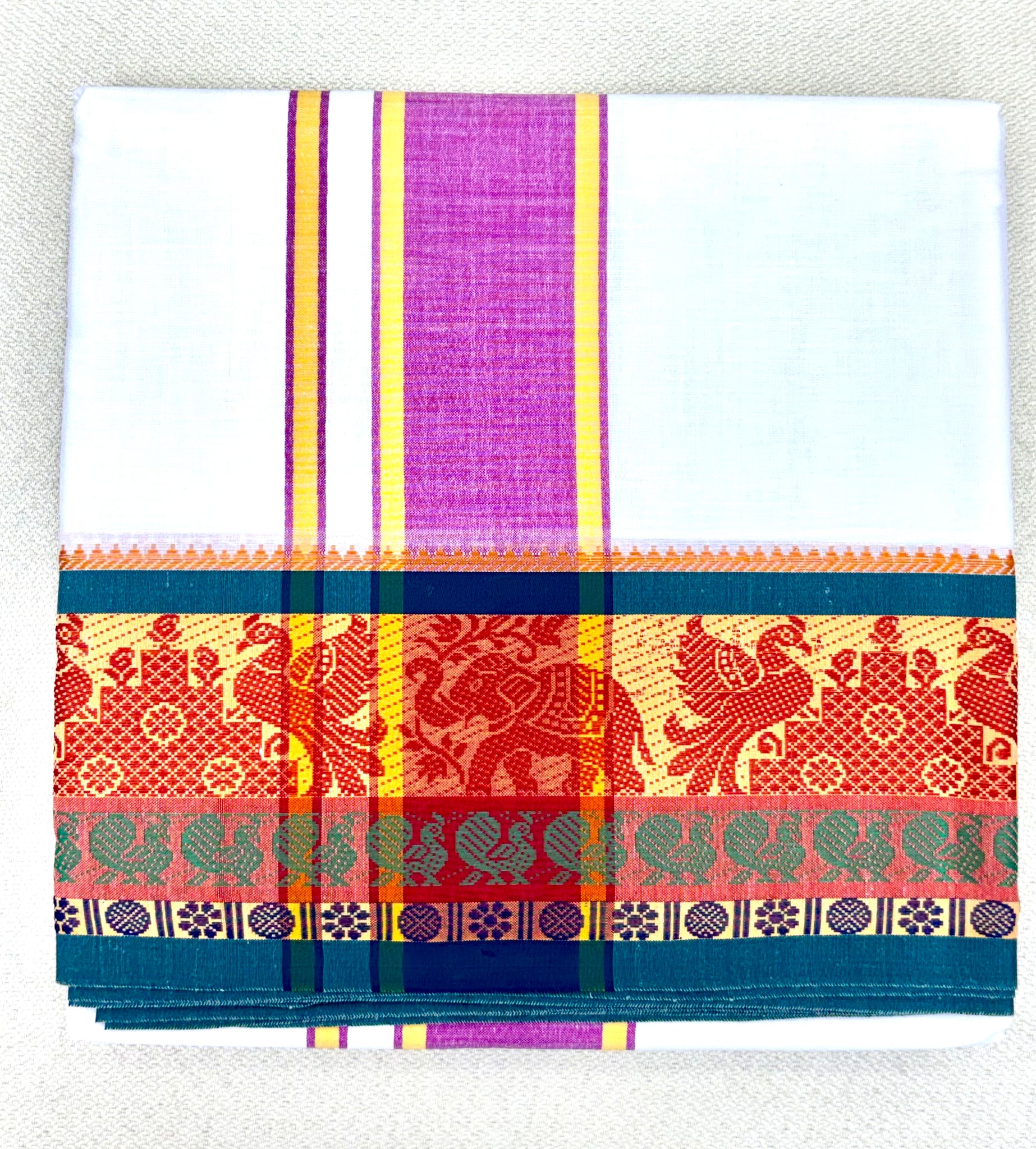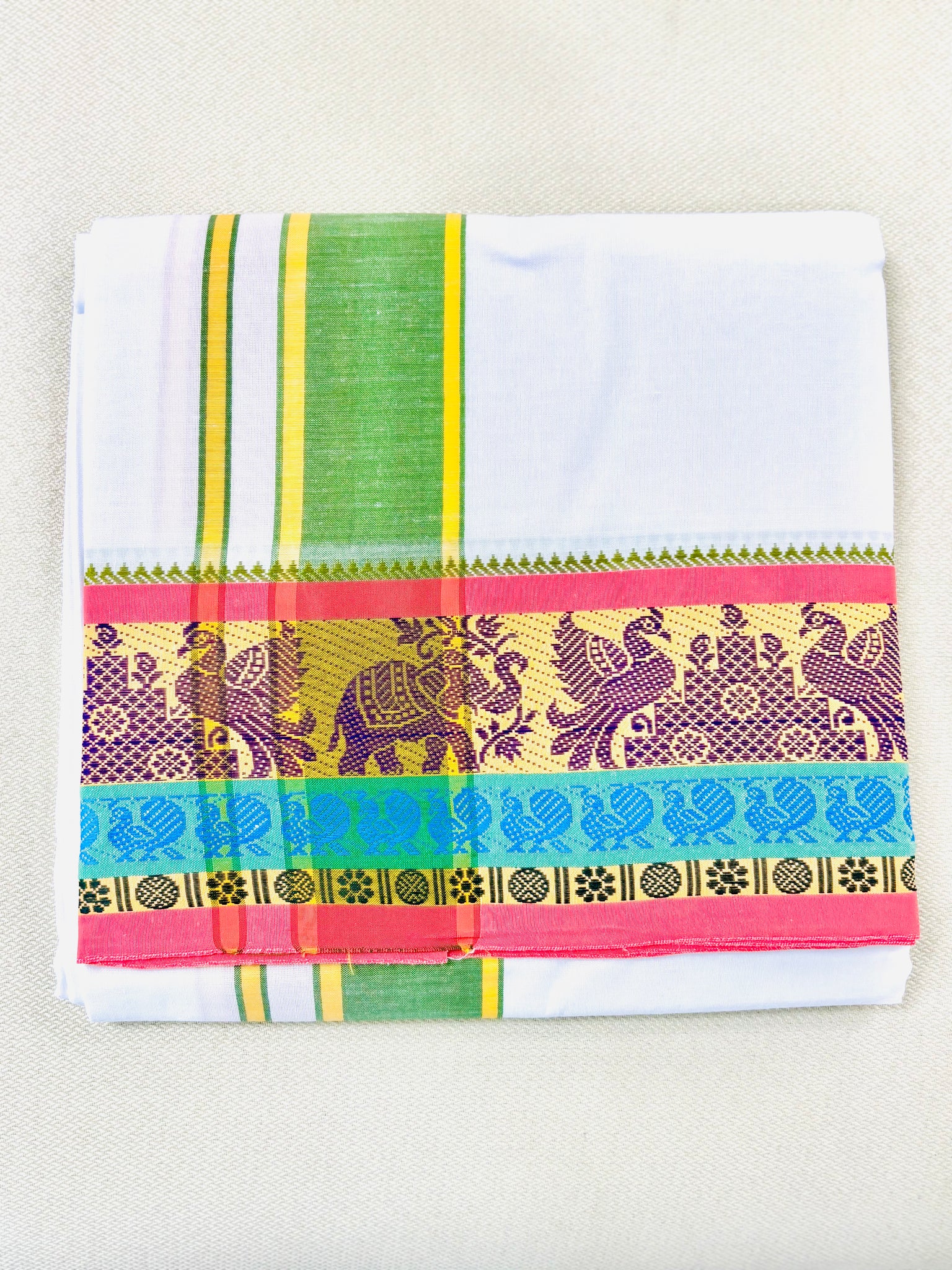 Jacquard Cotton Blend White Dhoti with Reversible Border