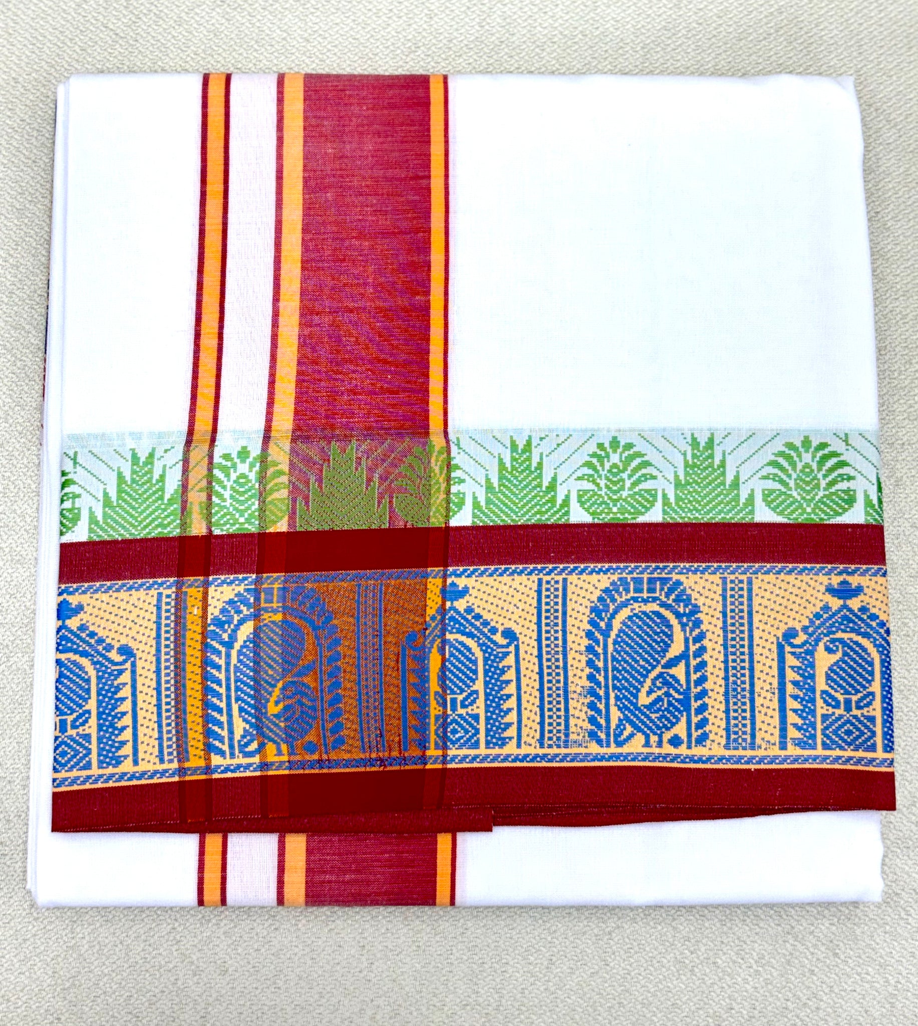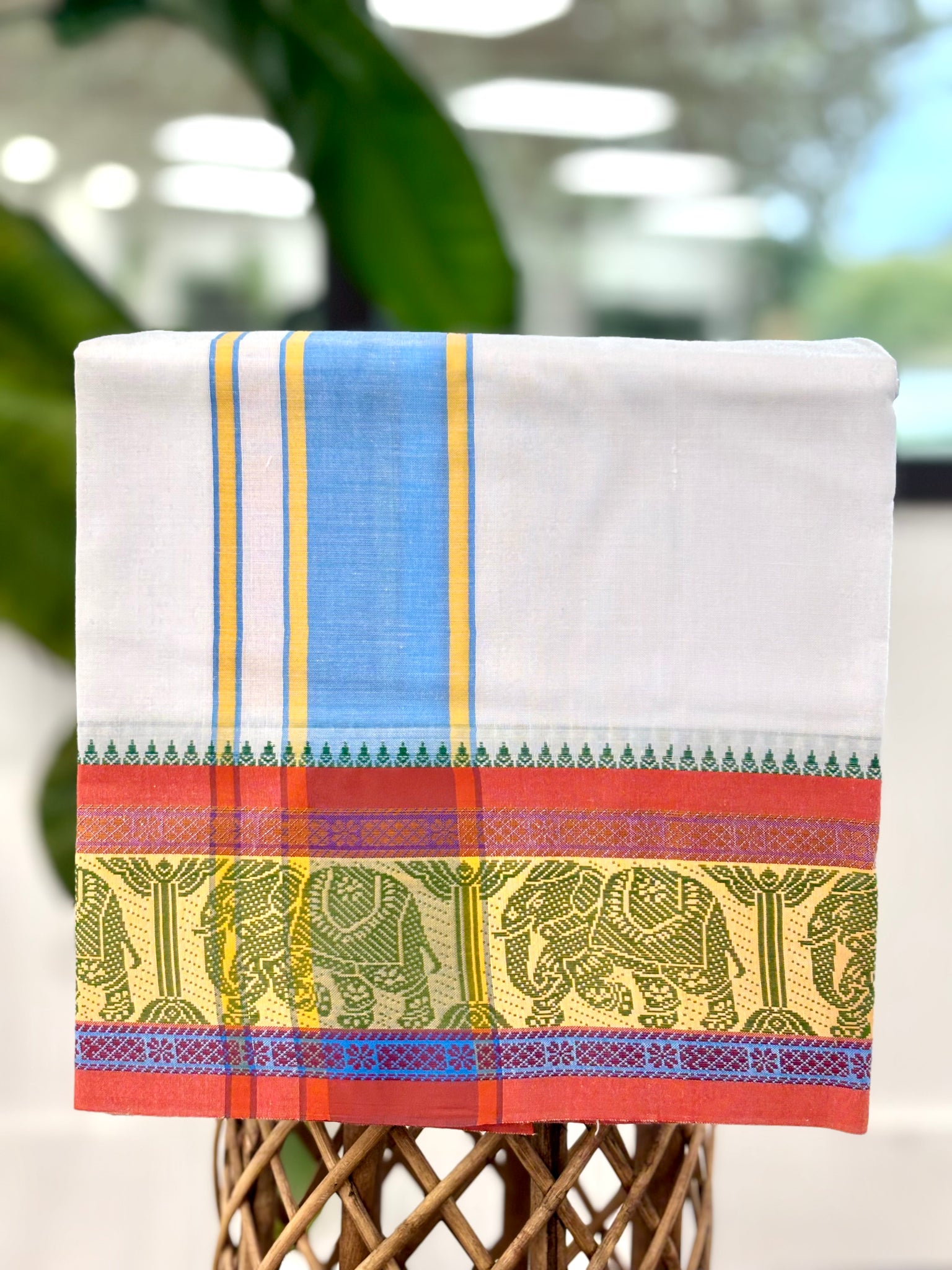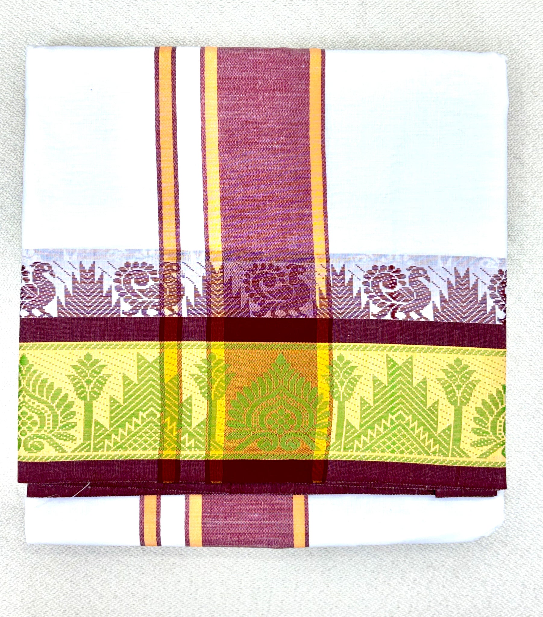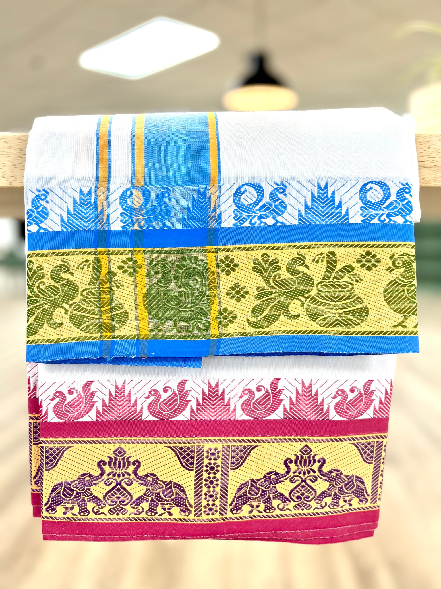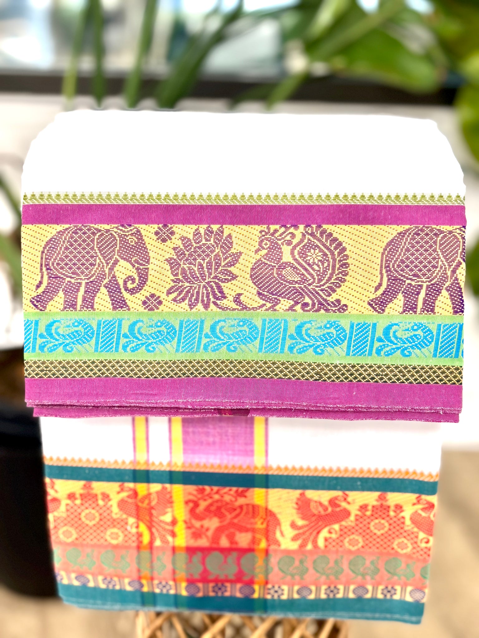 Jacquard Cotton Blend White Dhoti with Reversible Border