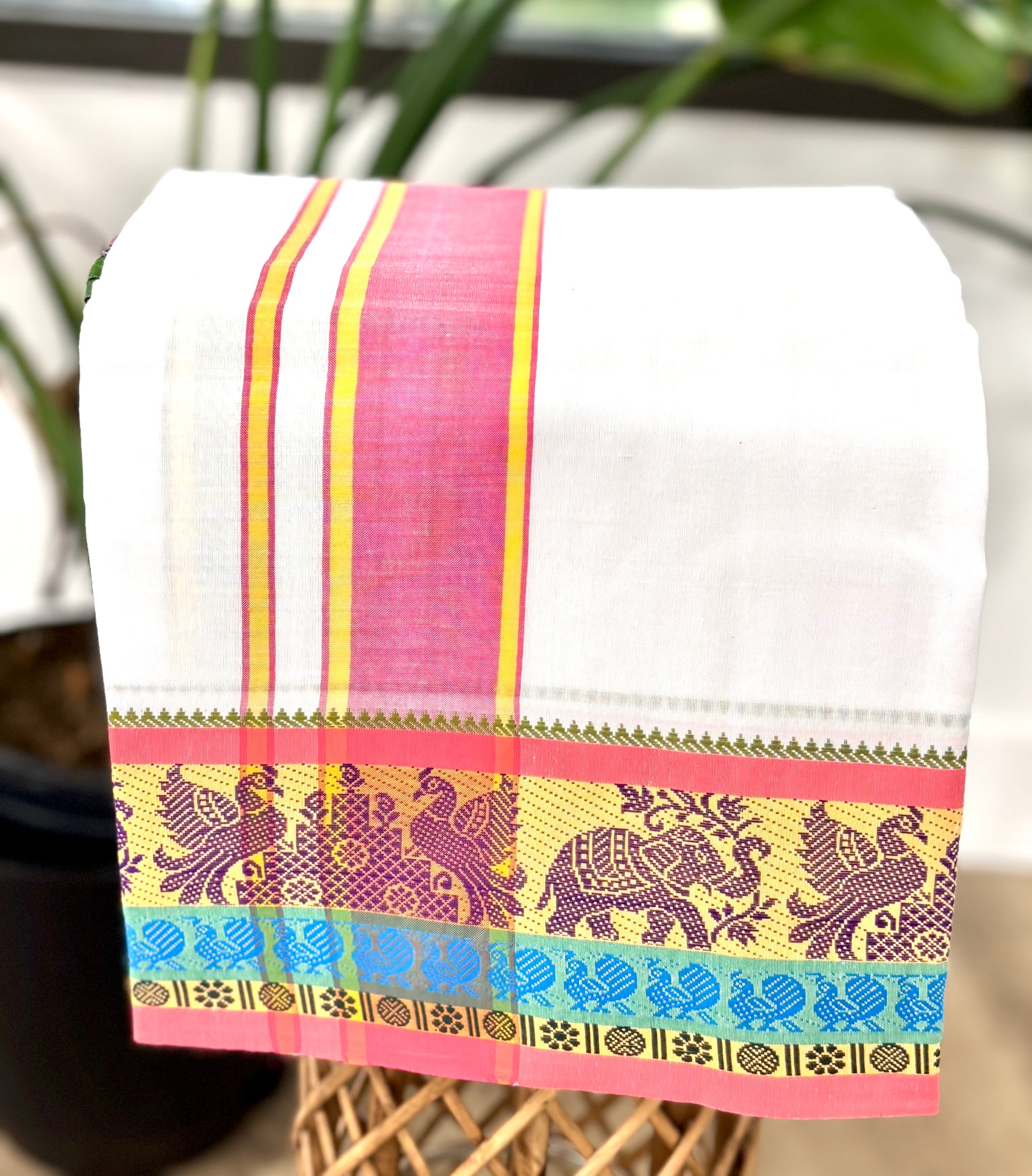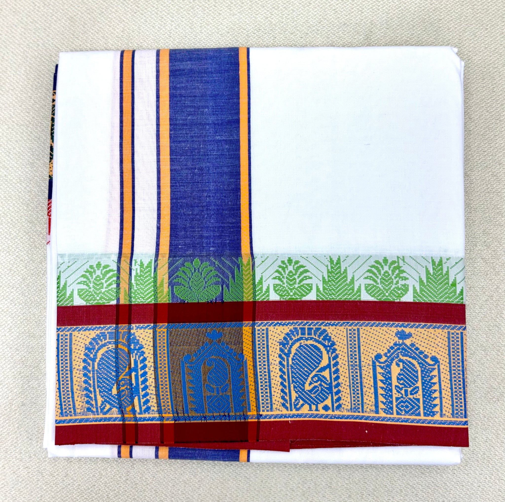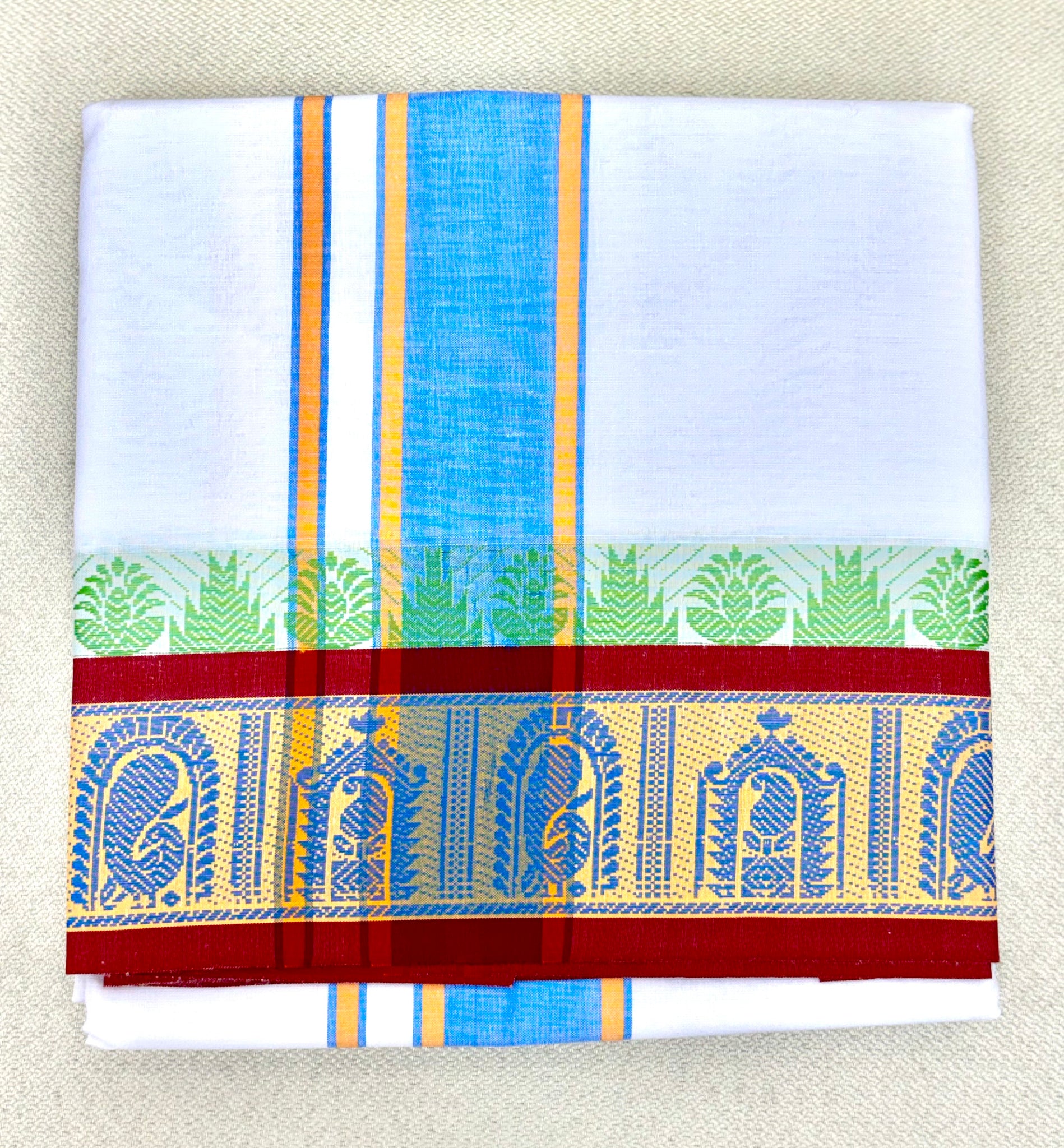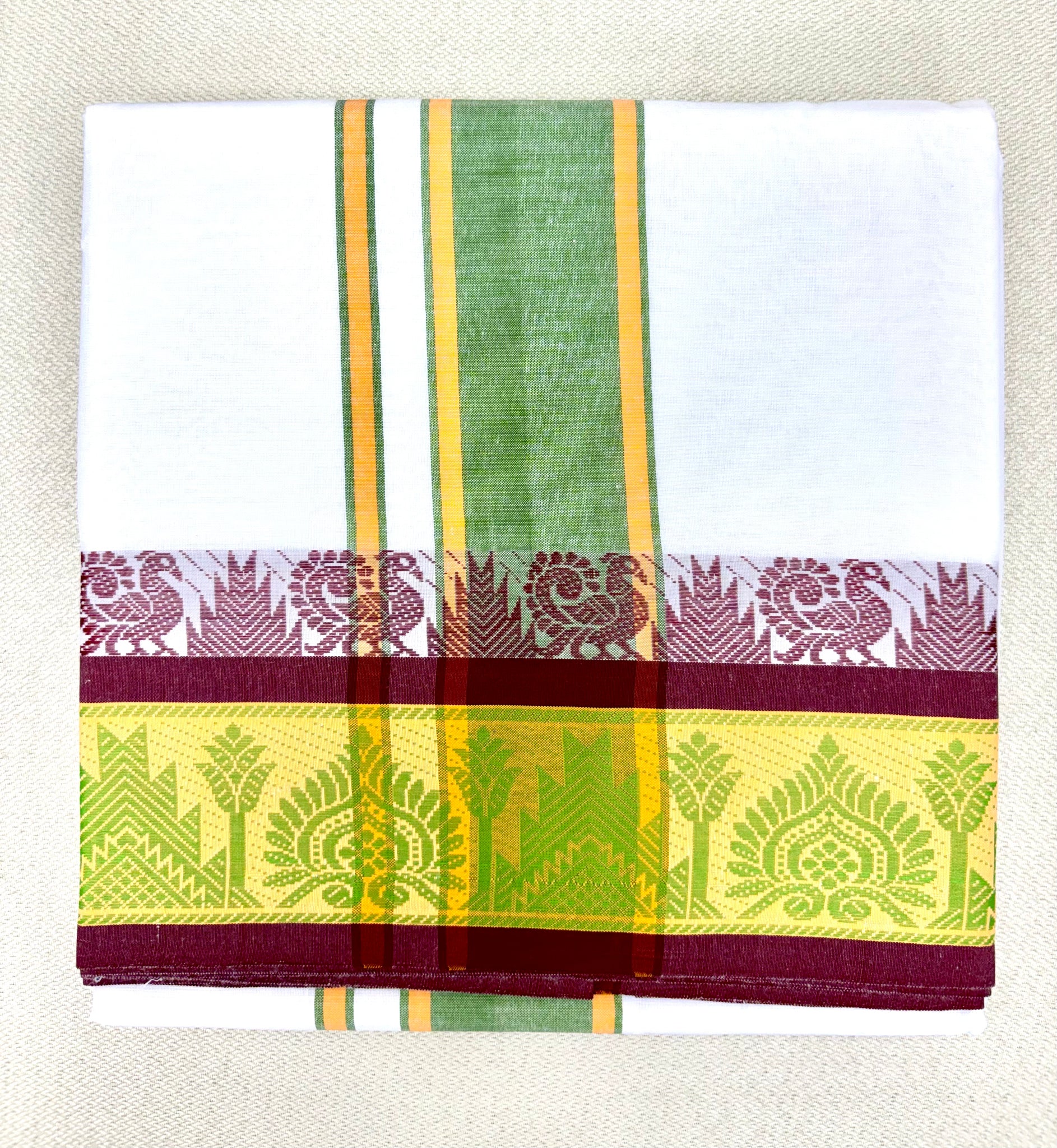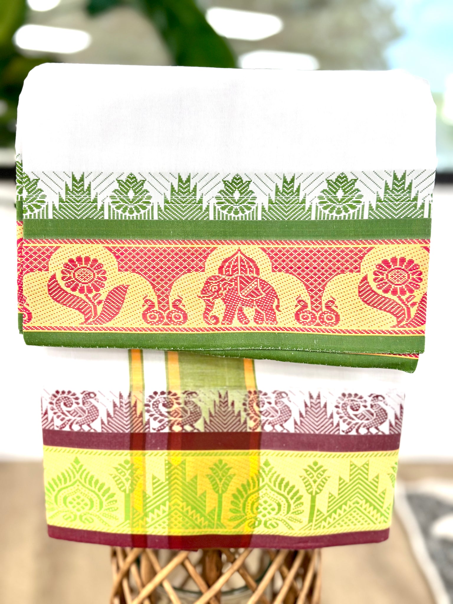 Jacquard Cotton Blend White Dhoti with Reversible Border