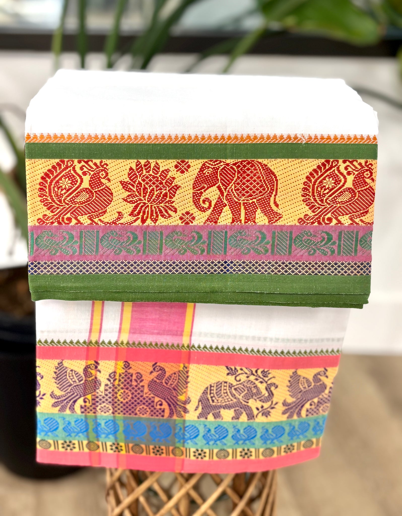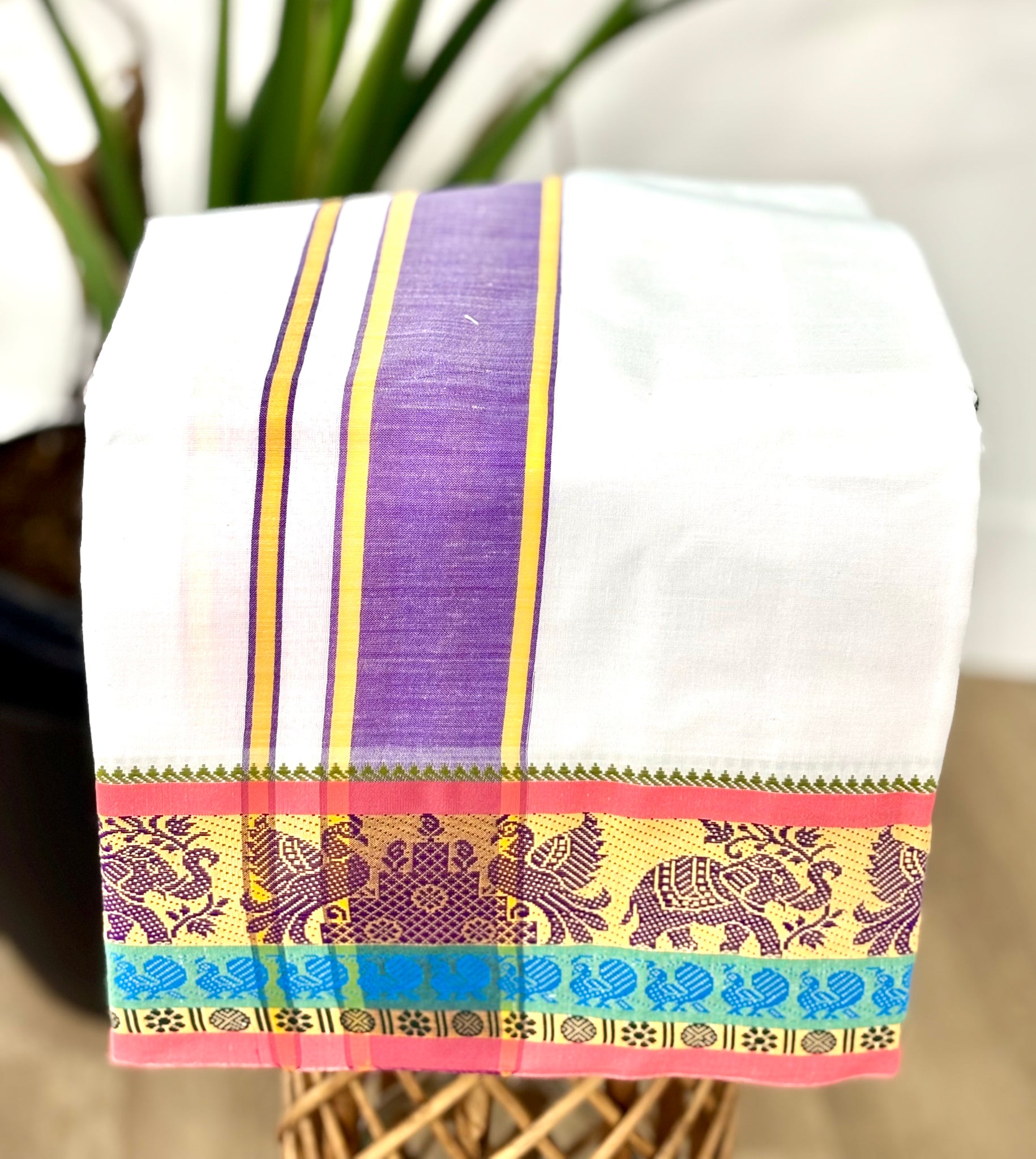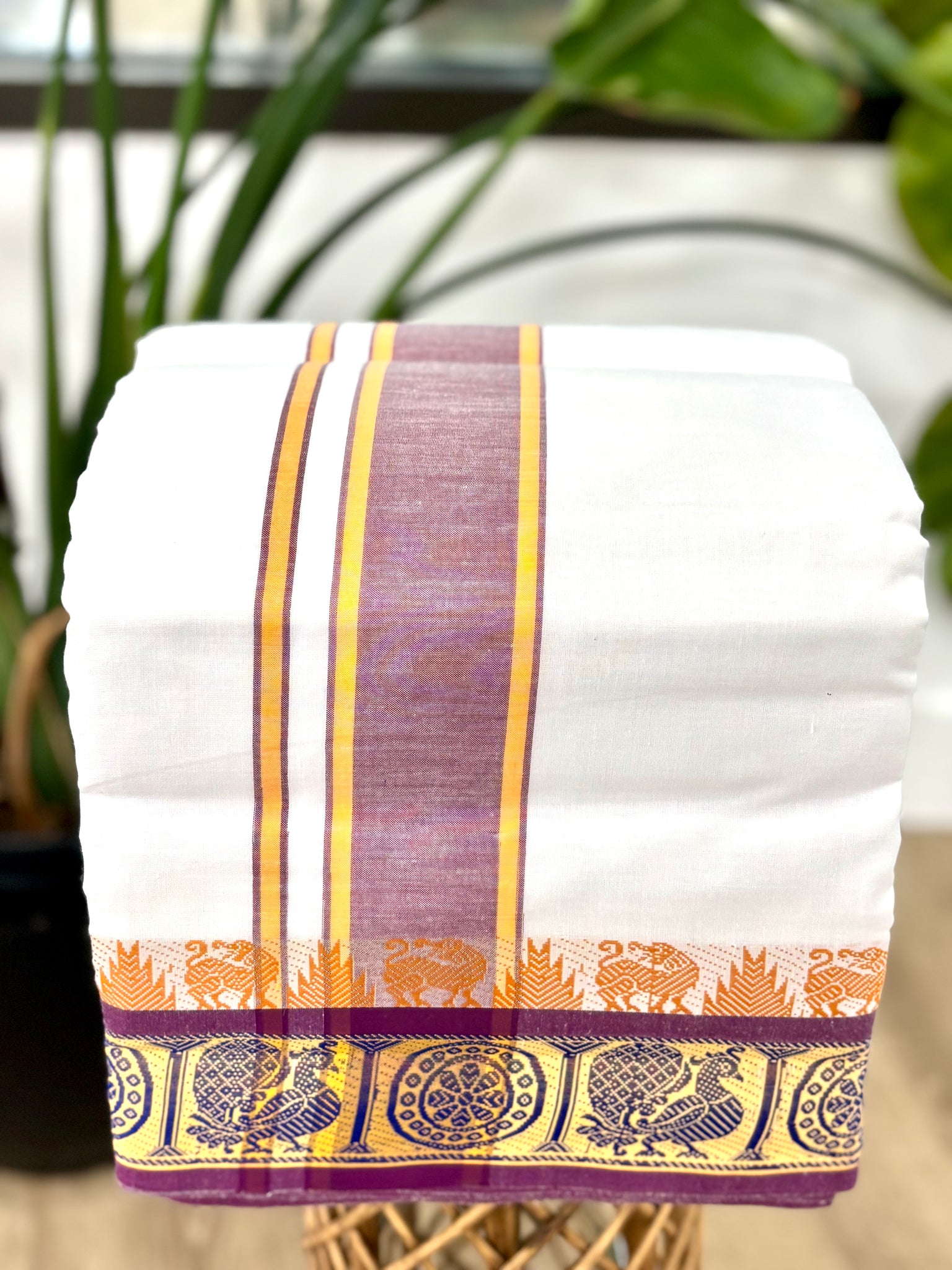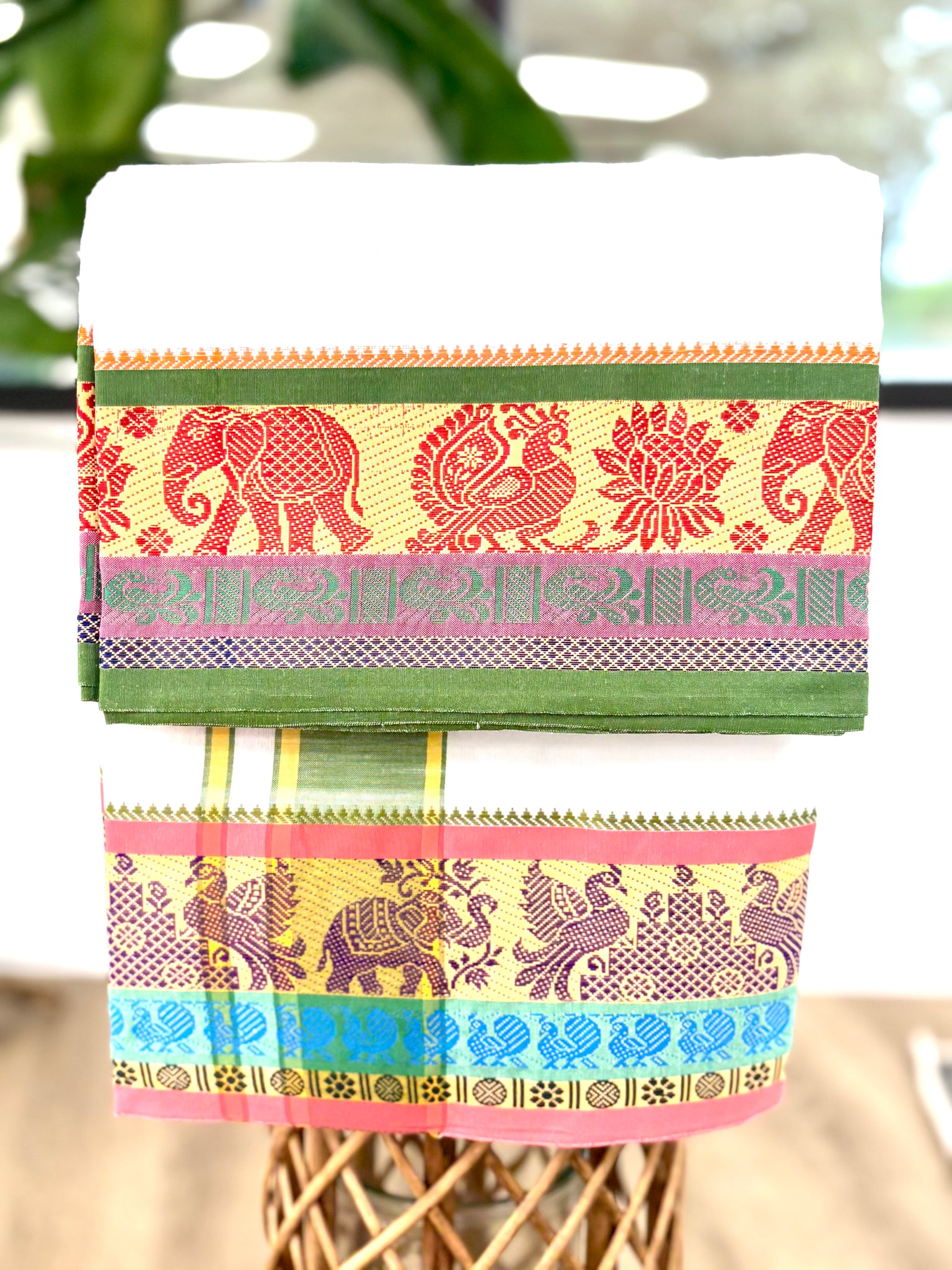Jacquard Cotton Blend White Dhoti with Reversible Border