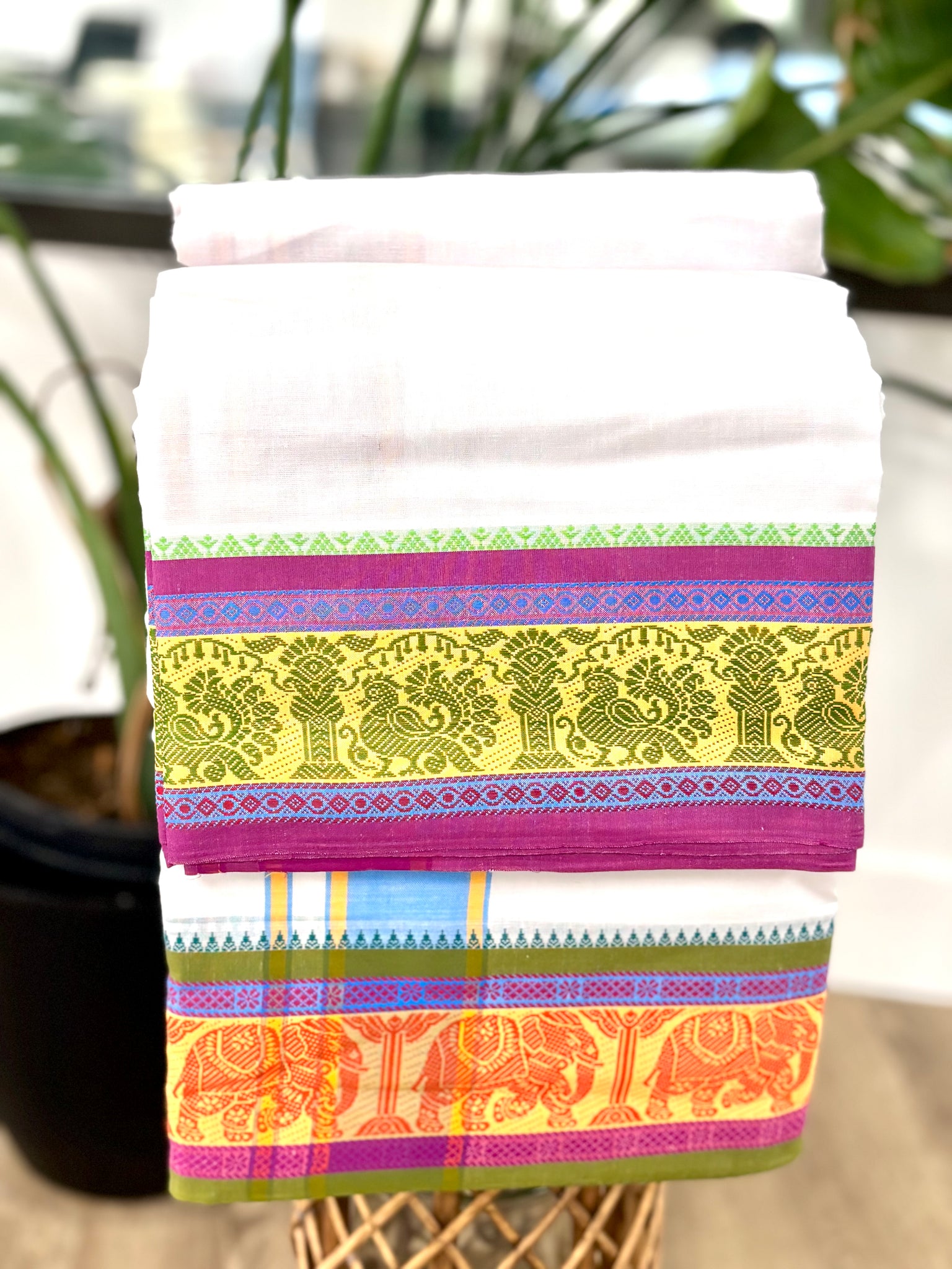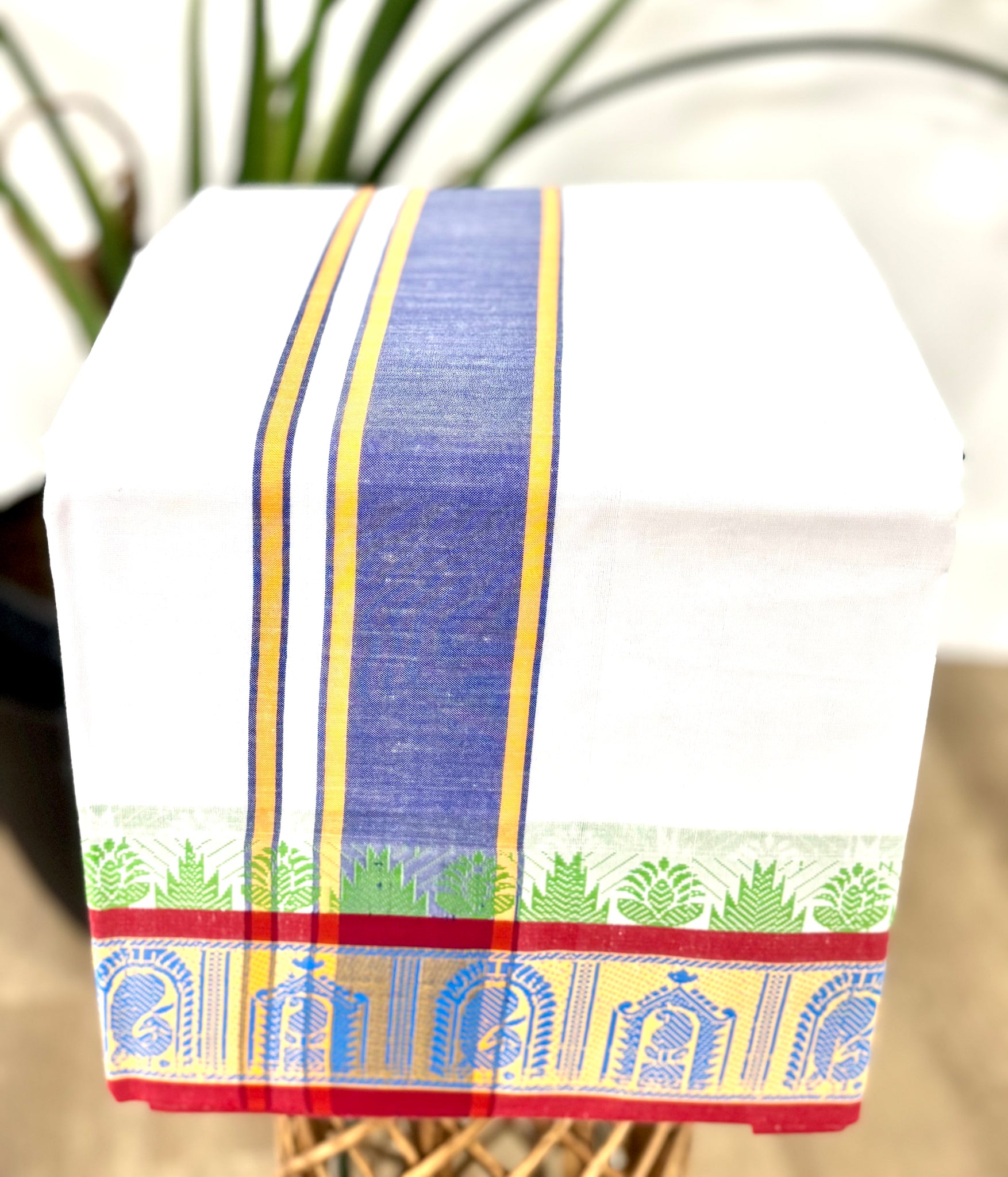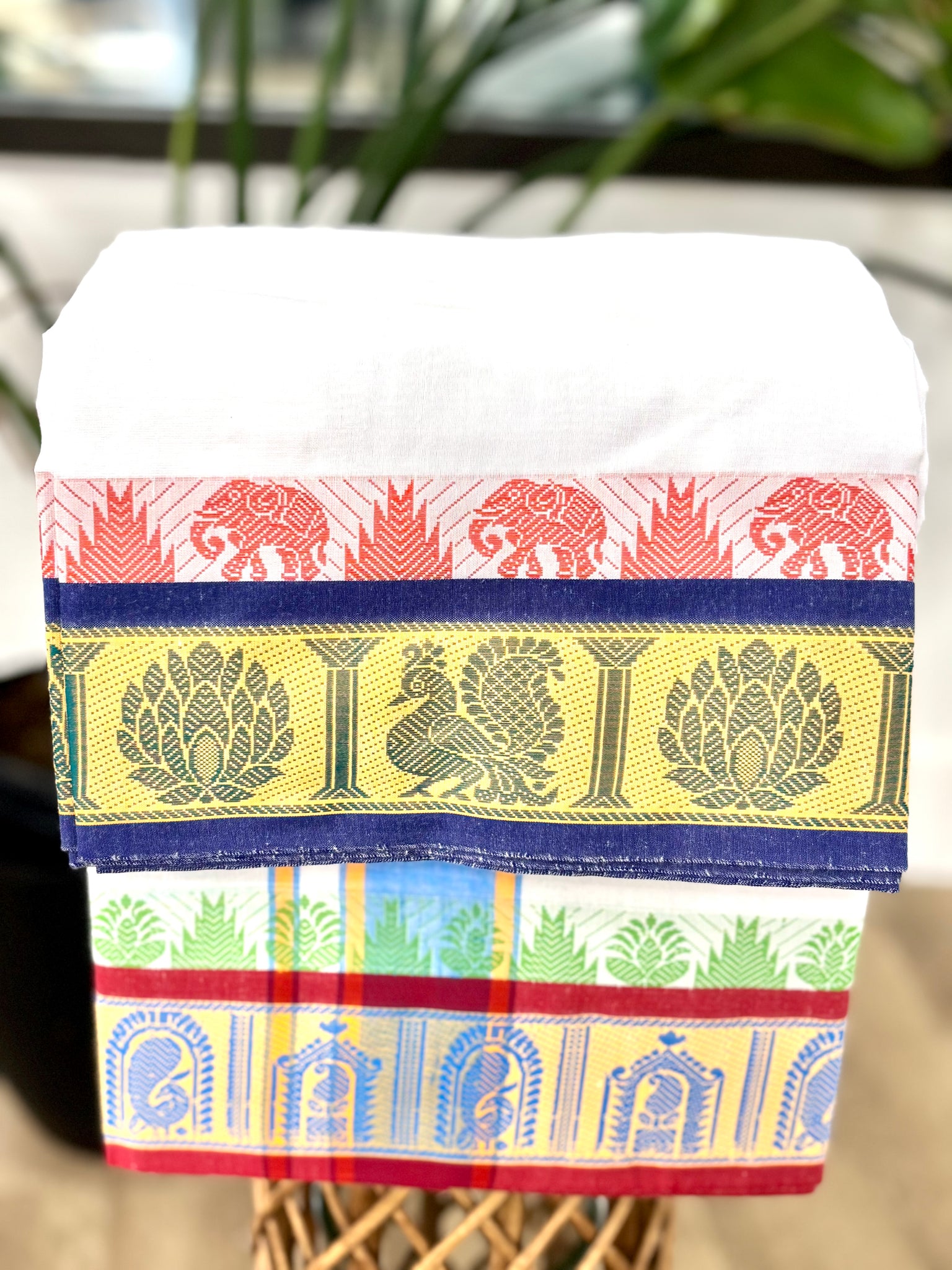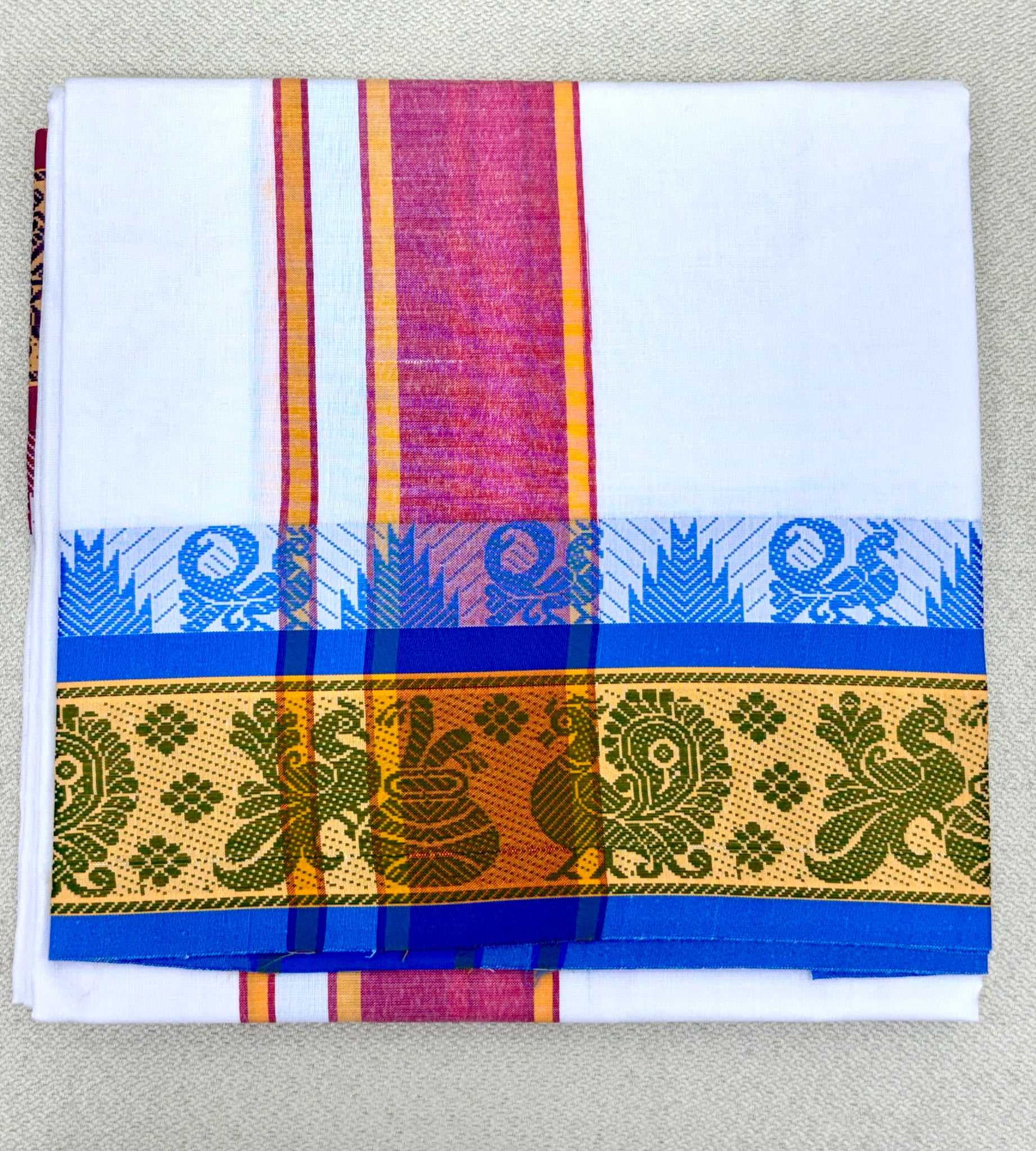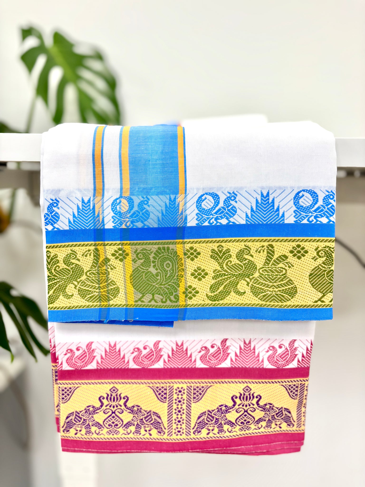 Jacquard Cotton Blend White Dhoti with Reversible Border