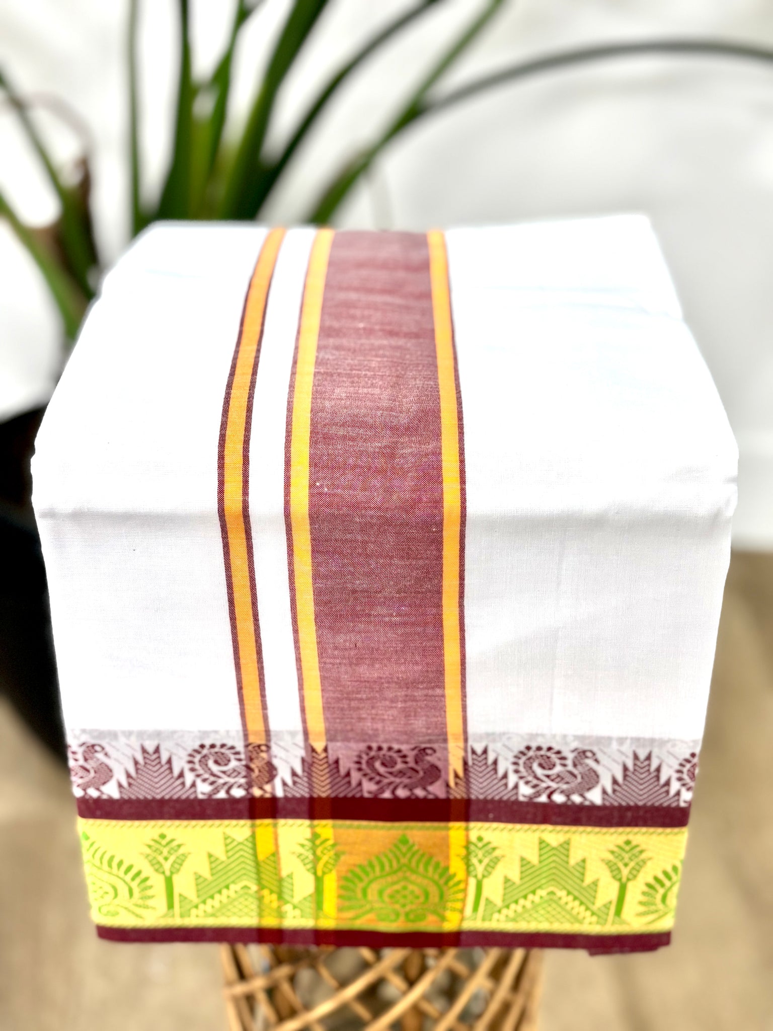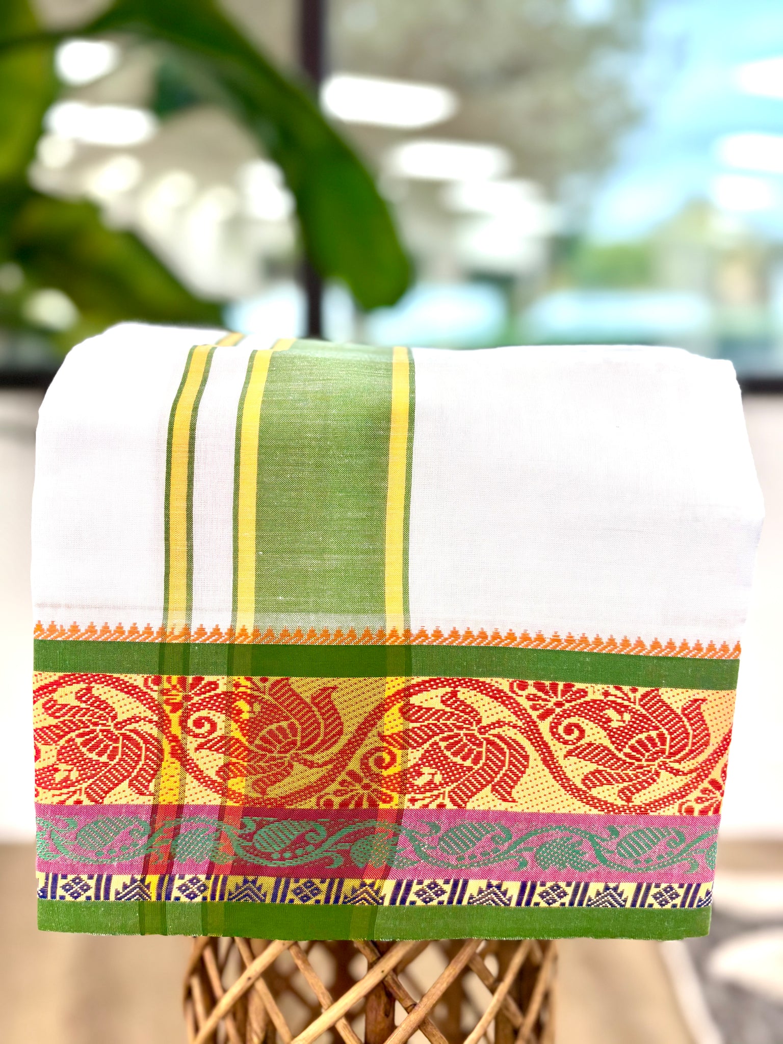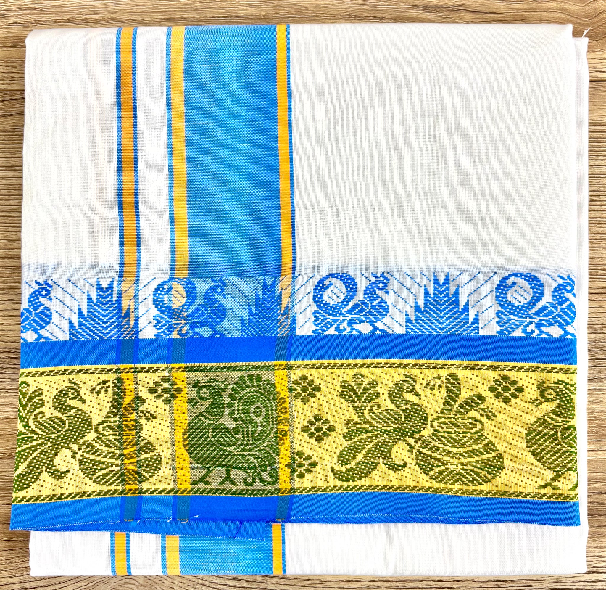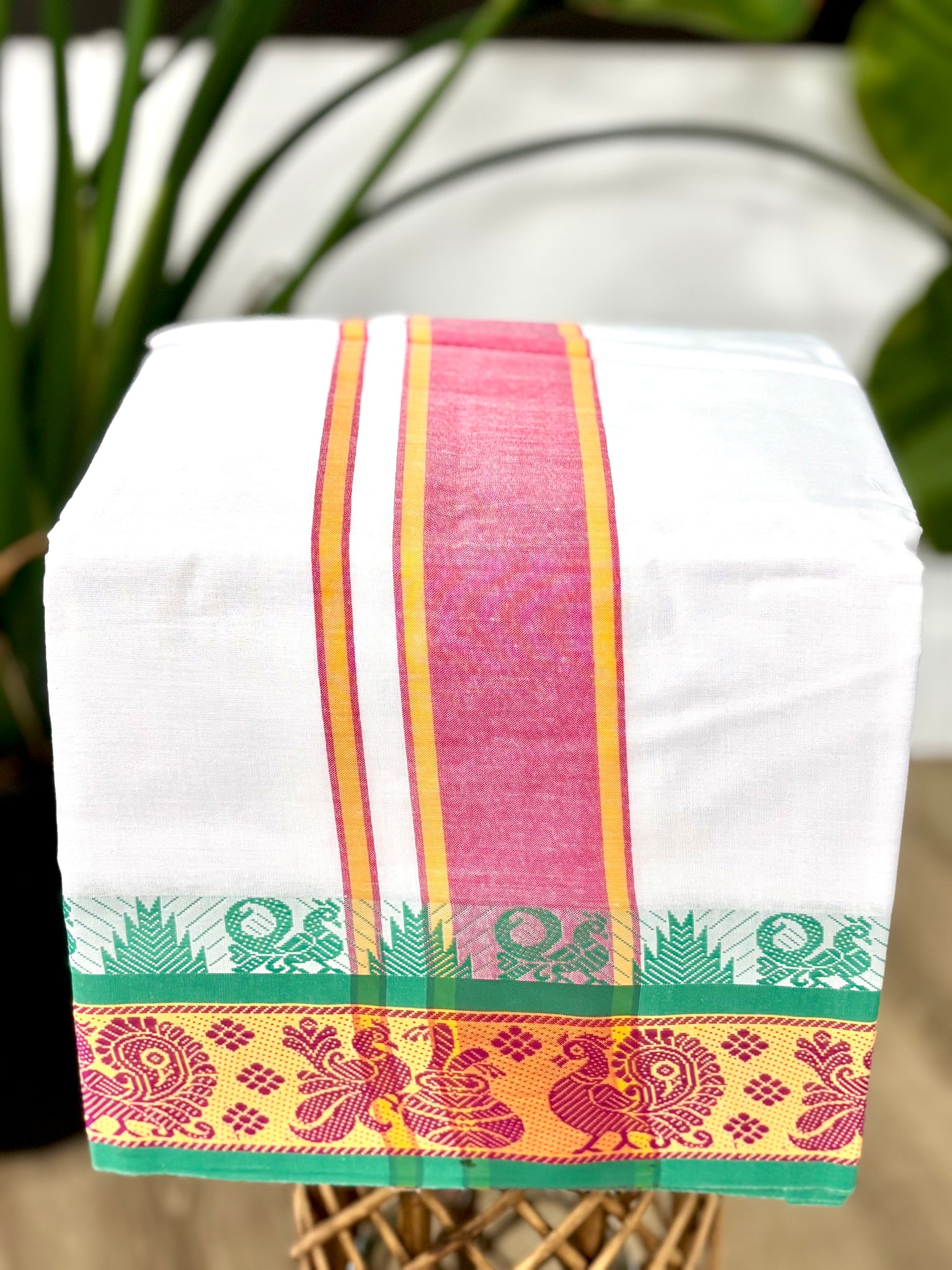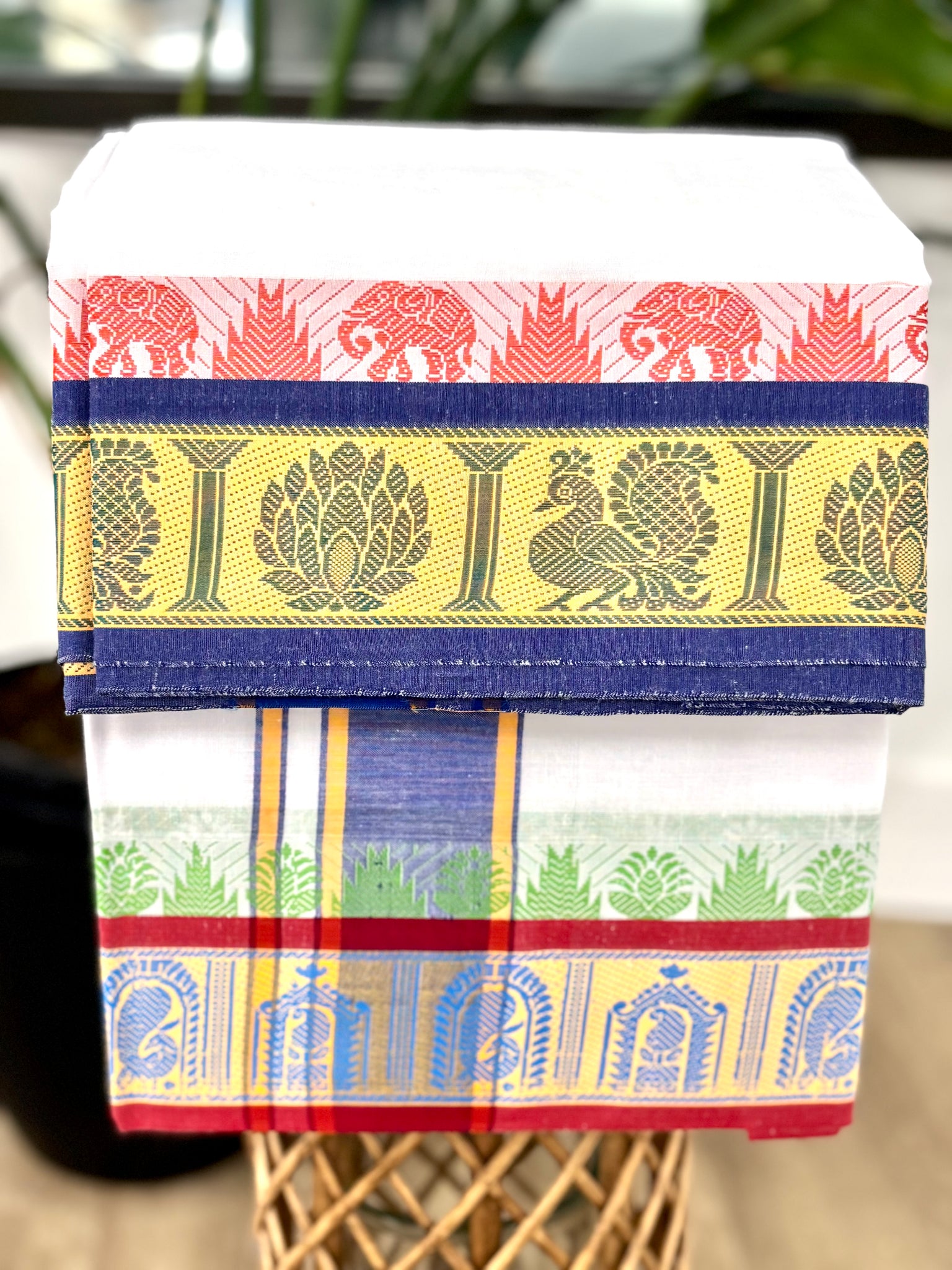 Jacquard Cotton Blend White Dhoti with Reversible Border