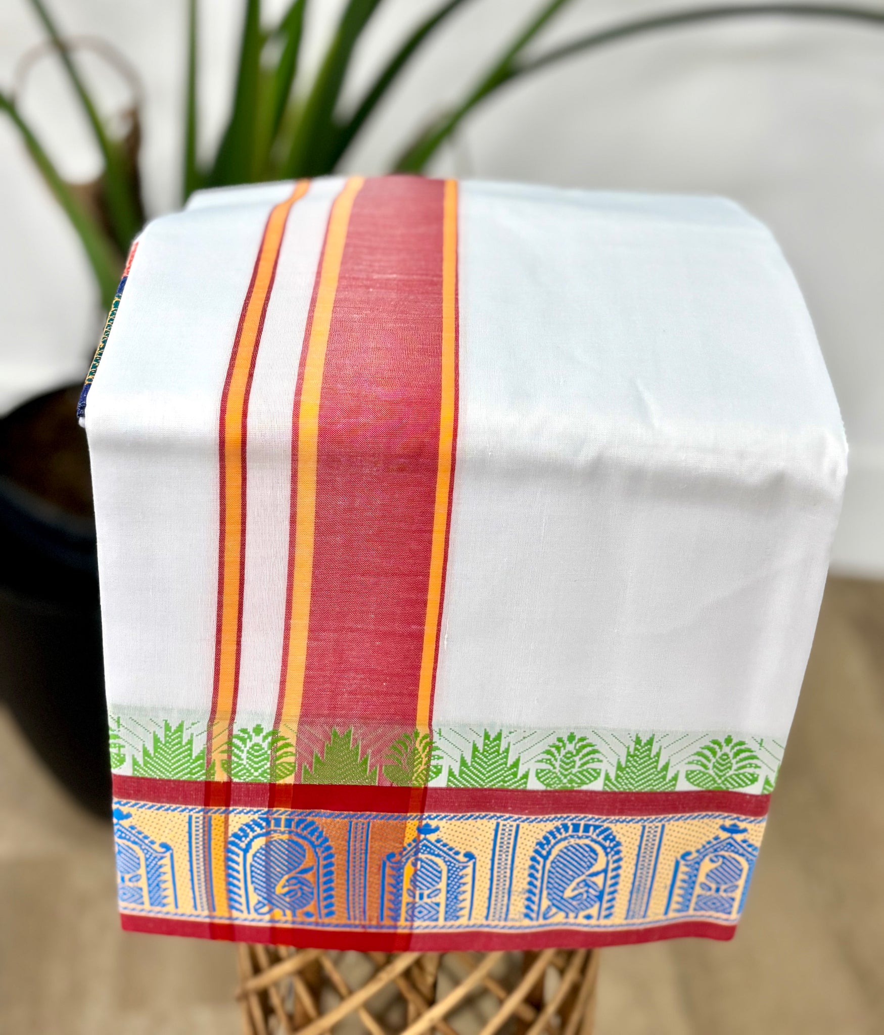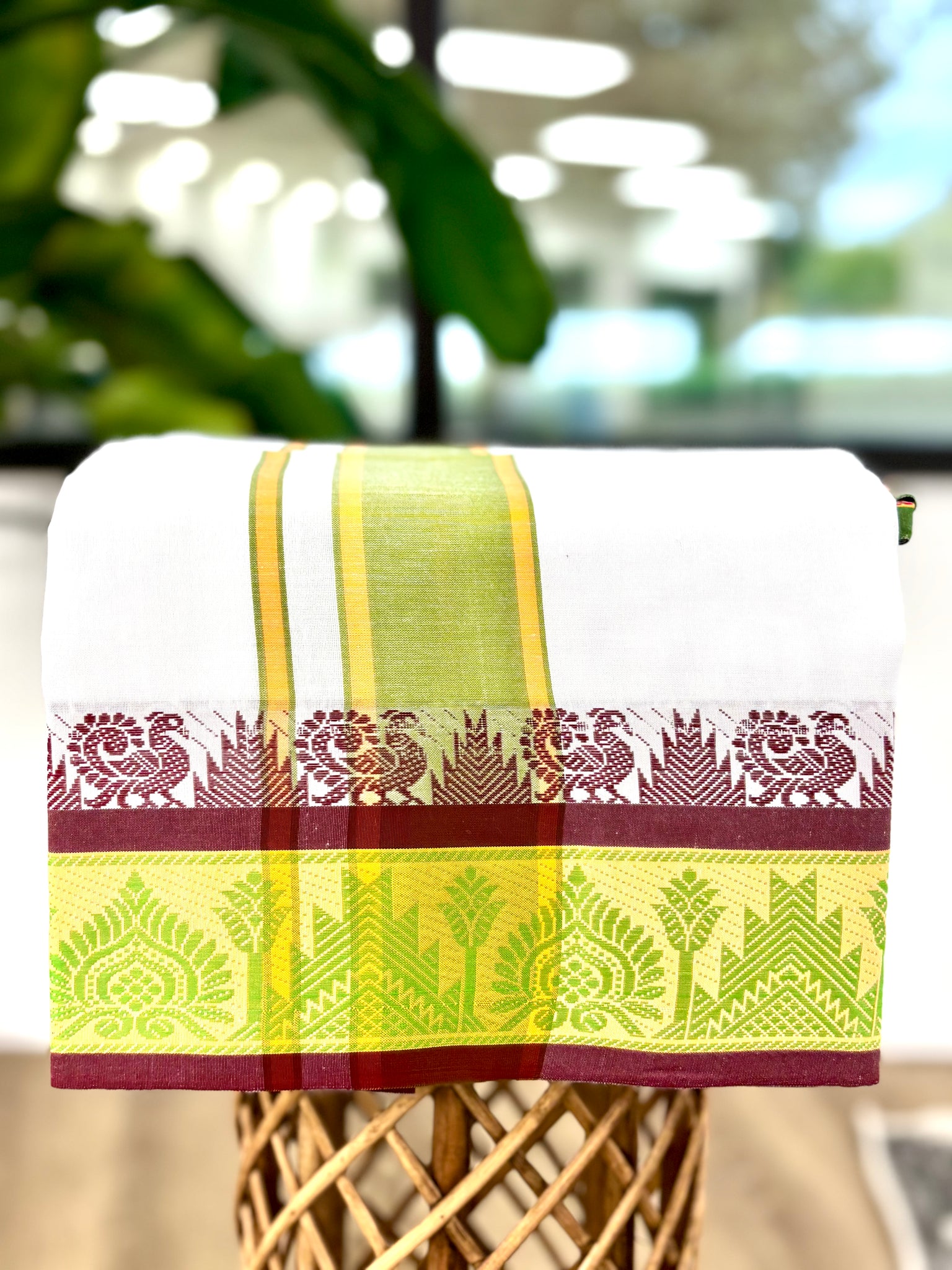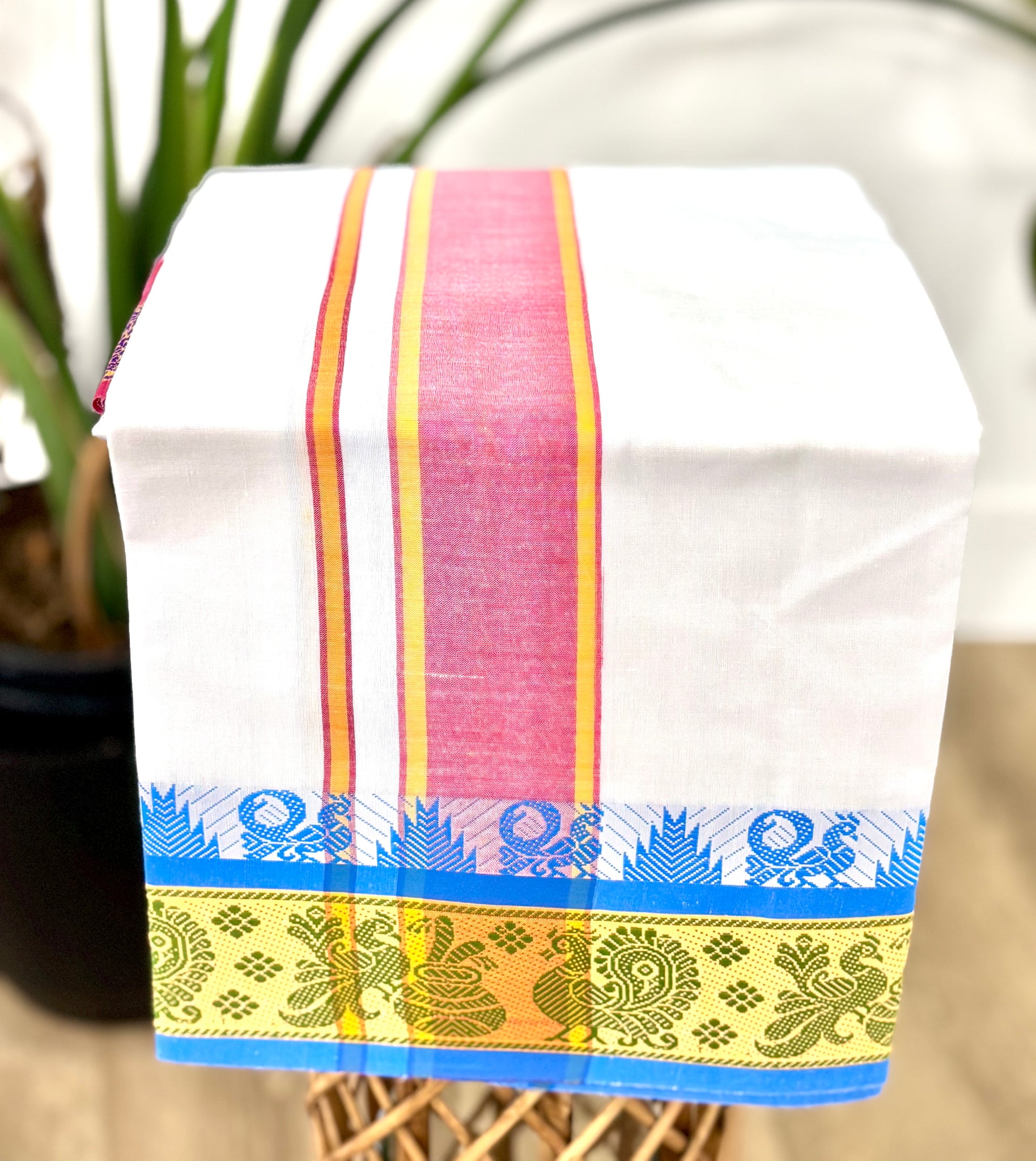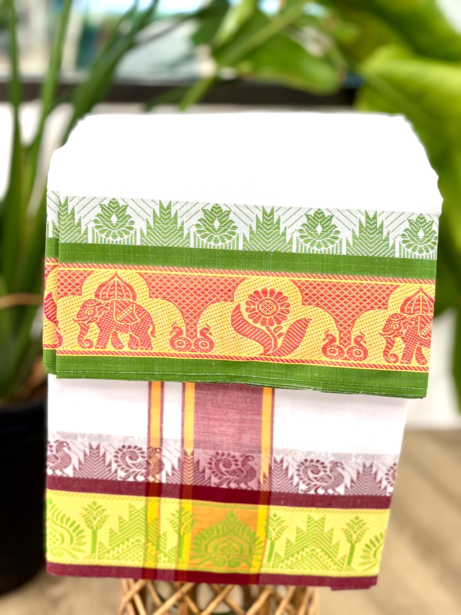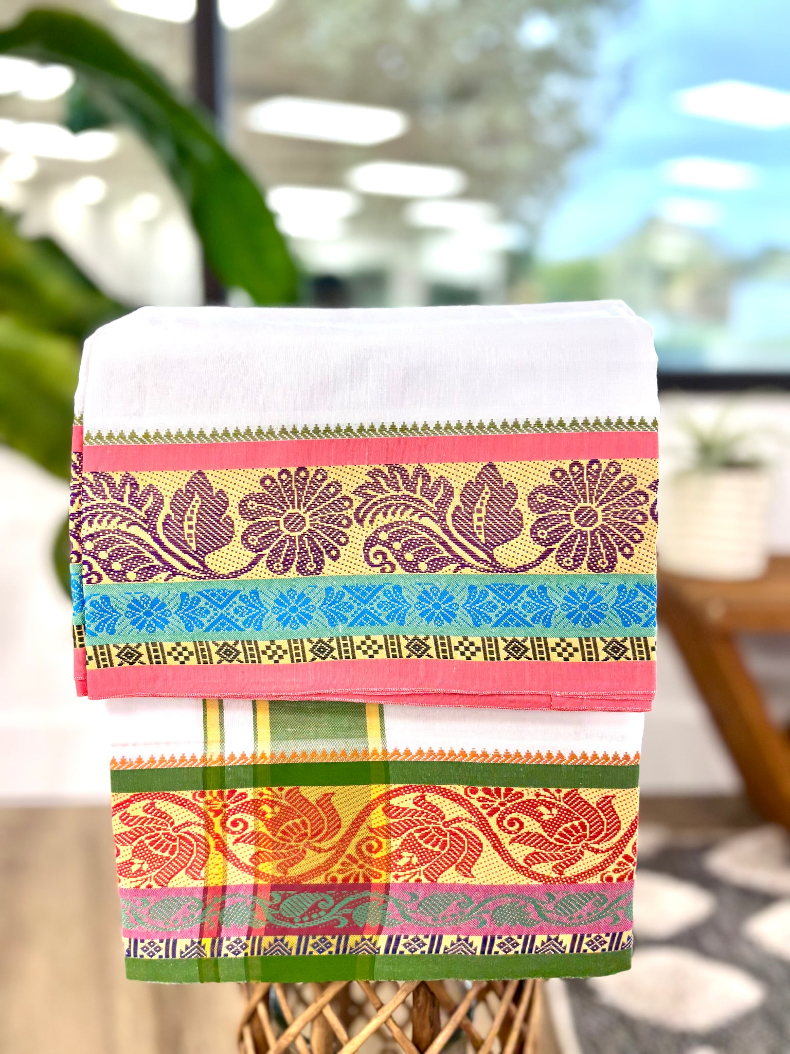 Jacquard Cotton Blend White Dhoti with Reversible Border